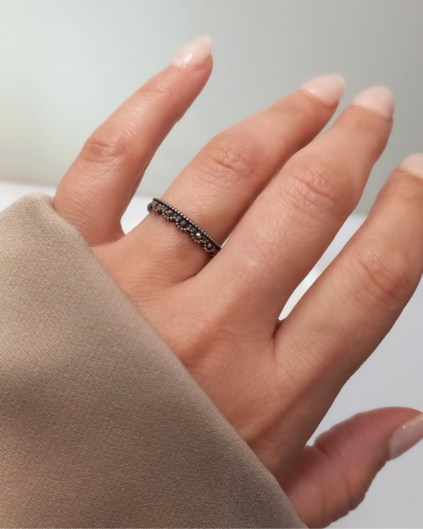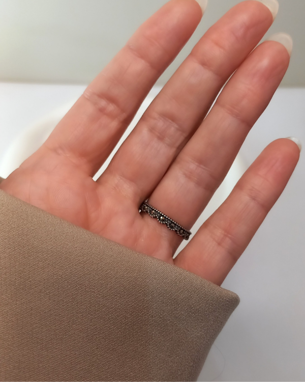 Anillo de diseño con marquesitas .Plata empavonada( oscurecida efecto viejo)