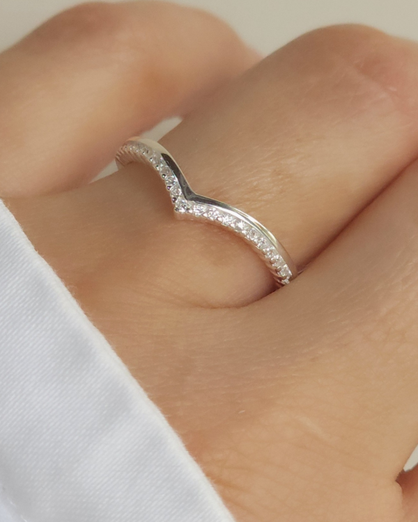 Anillo cintillo en forma de pico con reborde liso combinados con micro cristales ..