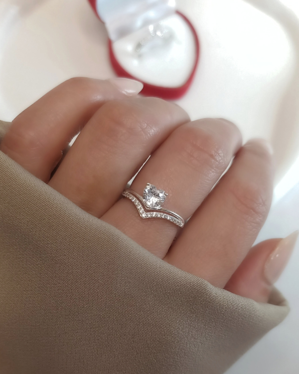 Anillo Doble en V , uno medio sin Fin con micro cubics y el otro anillo con vubis en el centro..