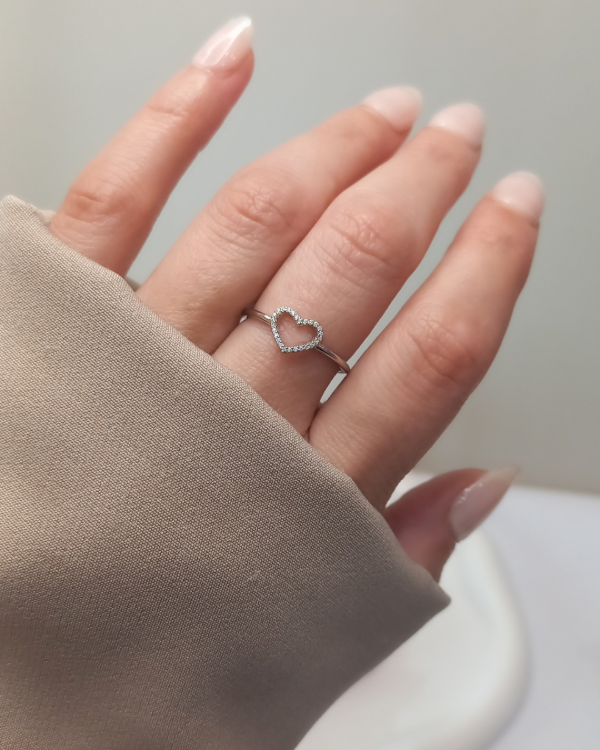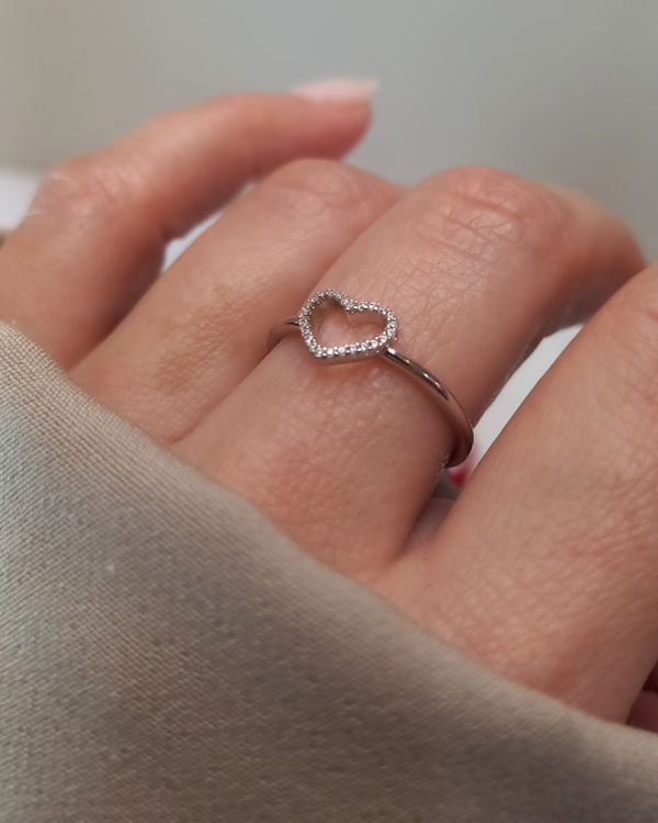 Anillo con corazon calado (9mm) , repleto de micro cubics en el contorno .