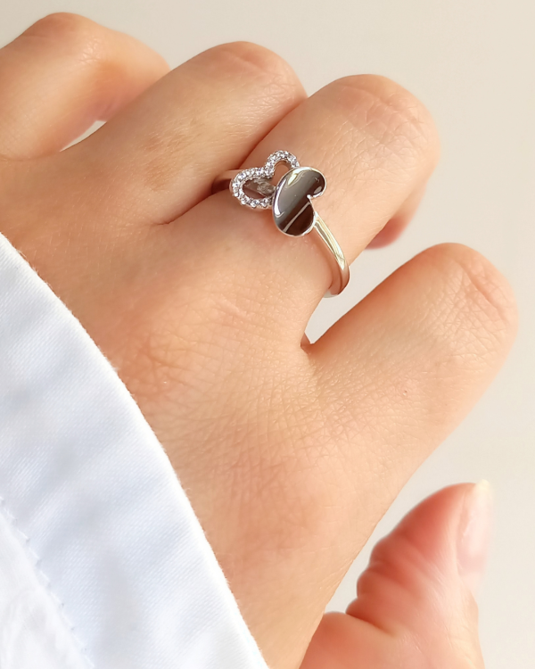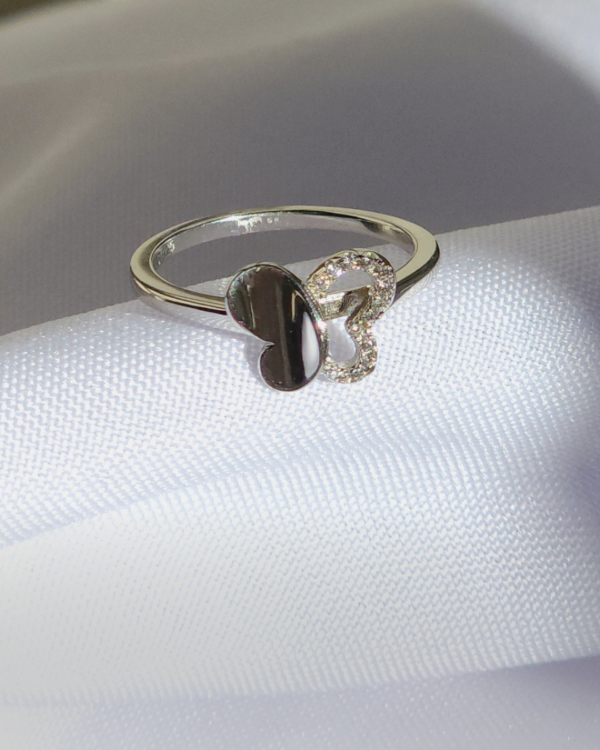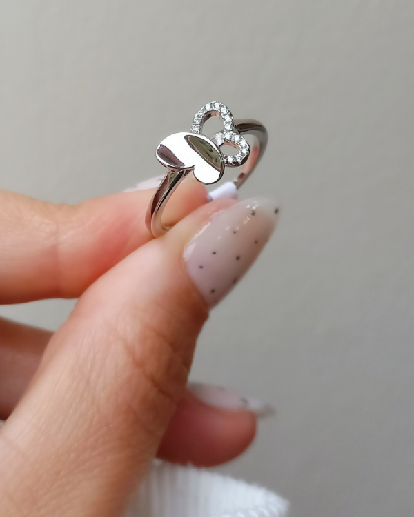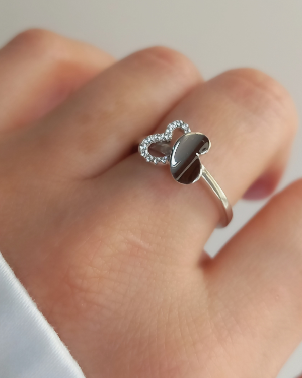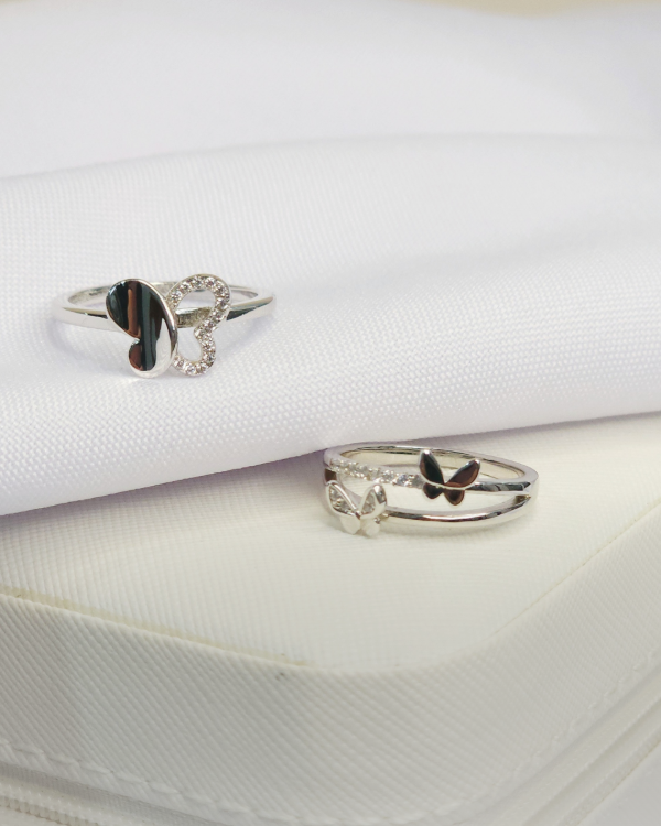 Anillo con Mariposa en el centro.combinada mitad calada con micro cristales bordeando el contorno & su otra mitad lisa .