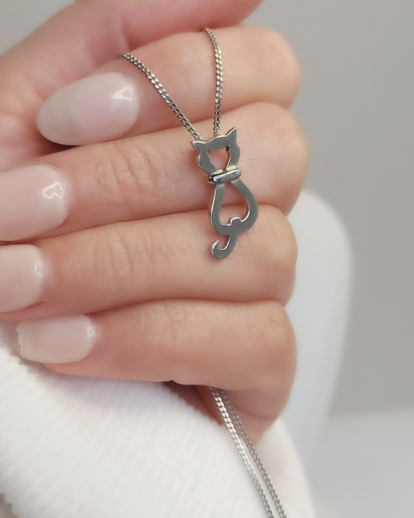 Cadena grumet 40Cm , & dije silueta de gato 20ml .