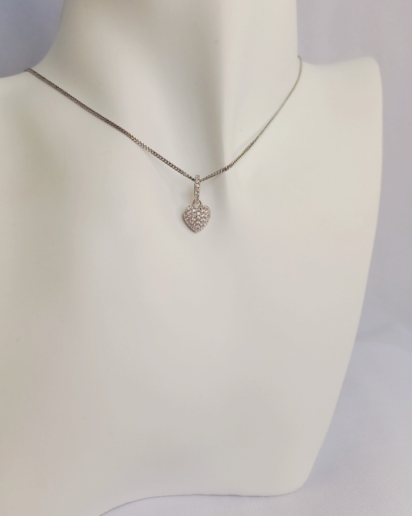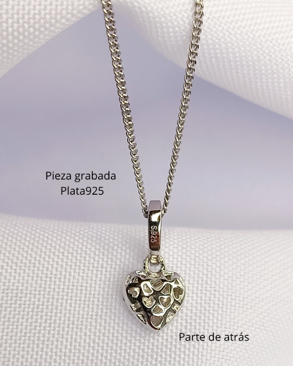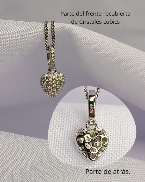 Cadena grumet 40cm & Dije corazón engarzado en argolla repleta de micro cristales al igual que el frente del dije. Parte trasera del dije casado con minis corazones.