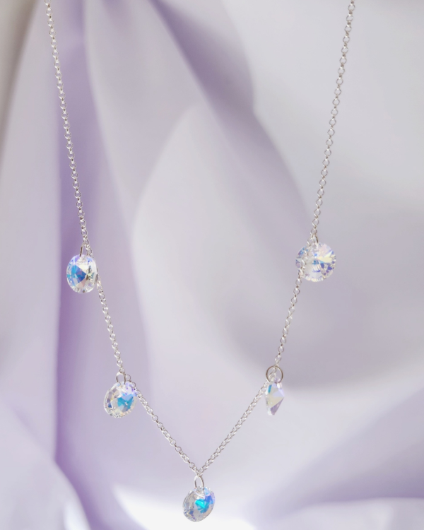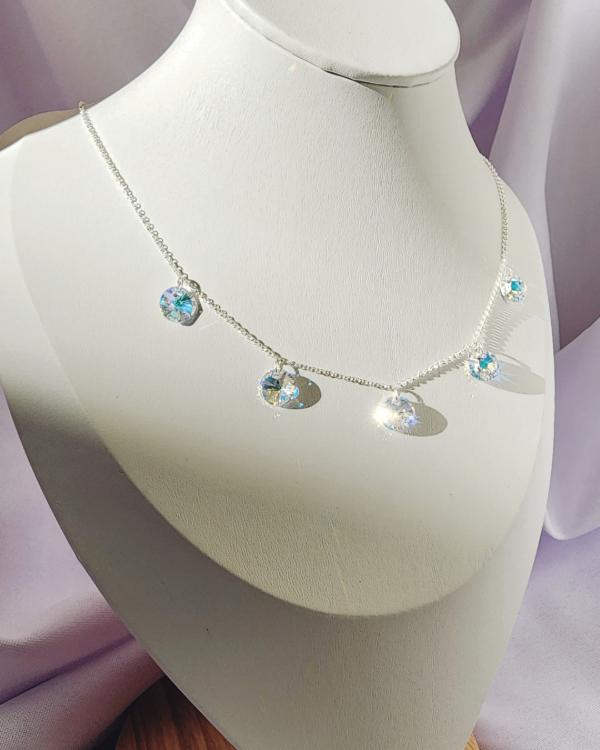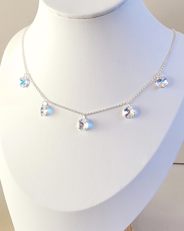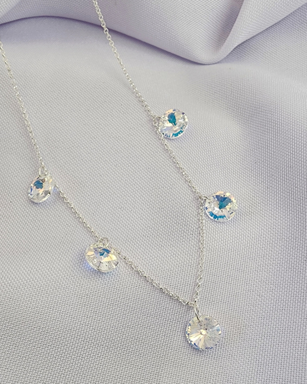 Cadena 43Cm con cinco dijes circulares en Cristal Swarovski. 9ml